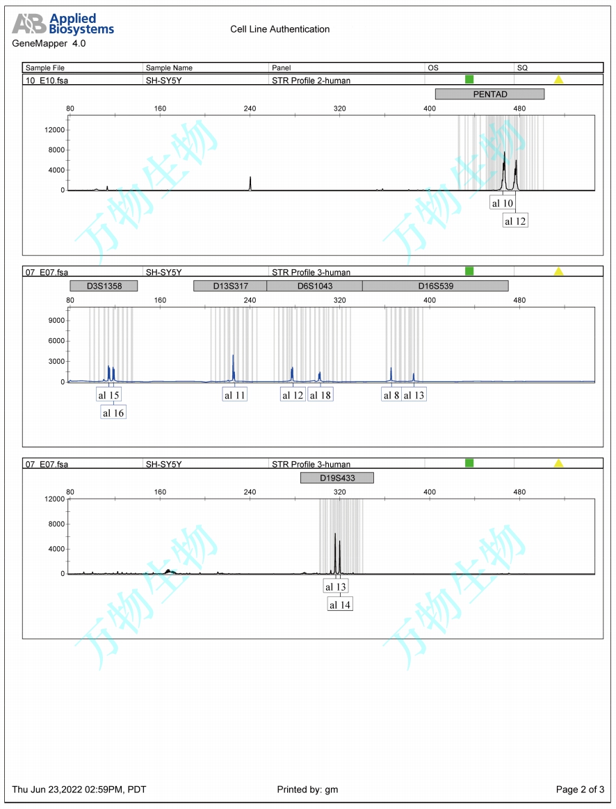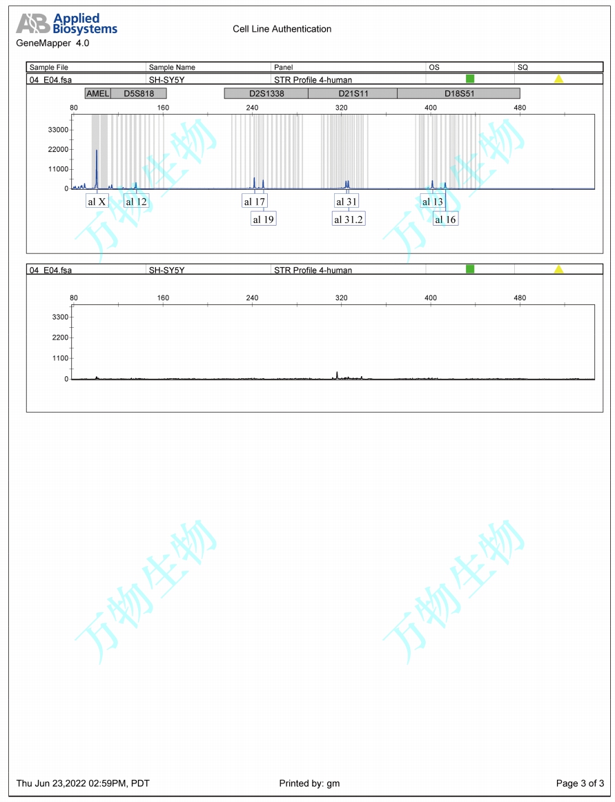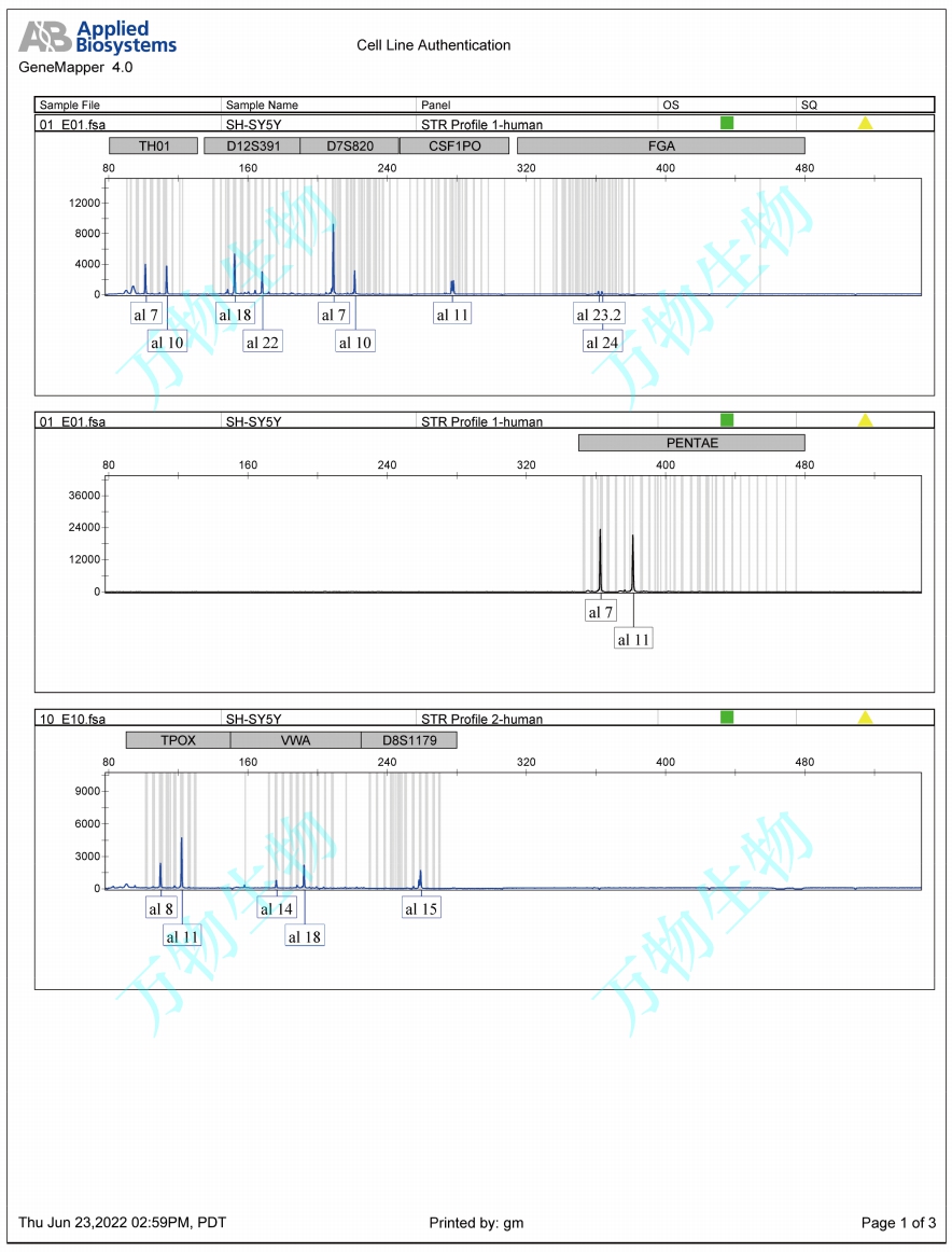 SH-SY5Y是1970年建自骨瘤轉(zhuǎn)移灶的神經(jīng)母細(xì)胞瘤SK-N-SH細(xì)胞系經(jīng)三次克隆后的亞系(SK-N-SH→SH-SY→SH-SY5→SH-SY5Y)。 該細(xì)胞顯示中等水平的多巴胺-β-羥基酶活性。SH-SY5Y細(xì)胞的飽和密度大于1X10?細(xì)胞/cm2。Problematic cell line: Partially contaminated. Some laboratories that are redistributing this cell line are in fact redistributing a contaminated cell line of mouse origin (PubMed=25182563). |