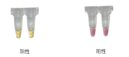 反應(yīng)結(jié)束后立即將反應(yīng)管取出,待恢復(fù)至室溫后,如果反應(yīng)液仍為黃色,判斷結(jié)果為陰性;如果反應(yīng)液變?yōu)榧t色,判斷結(jié)果則為陽性。反應(yīng)管不可開蓋,否則很容易導(dǎo)致氣溶膠污染。