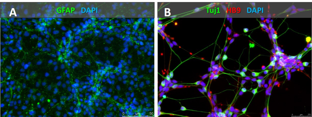 圖4。衍生的非小細胞肺癌可分為GFAP+星形膠質細胞(A)或HB9+運動神經(jīng)元(B)。